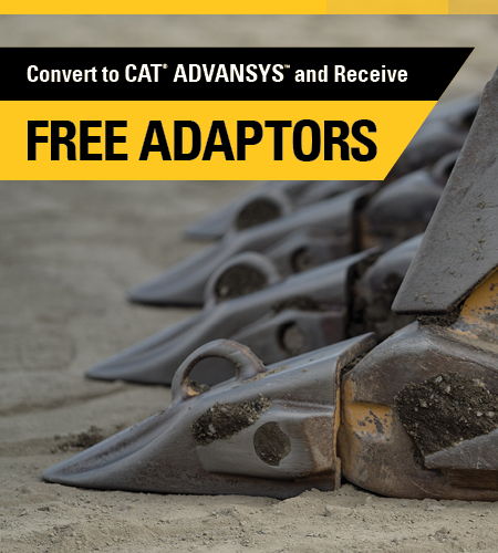 Convert to Cat® Advansys™ today and receive Free Adaptors for your wheel loader or excavator. Plus, for select equipment you could get 50% off Base Edge + Base Edge Assemblies*. Take advantage of this special offer today.