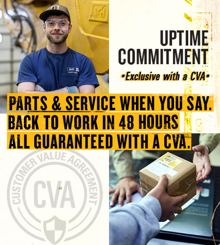 With the new Uptime Commitment—included with every CVA—you get next-day maintenance, wear, and repair parts* and immediate service response**, guaranteeing you’re back to work within 48 hours.***