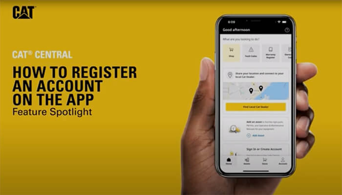 Find out how to register for an account in the Cat Central app with only a few easy steps. Plus, unlock the full benefits of Cat Central, including the ability to save and manage multiple assets, quickly reorder parts, and more!