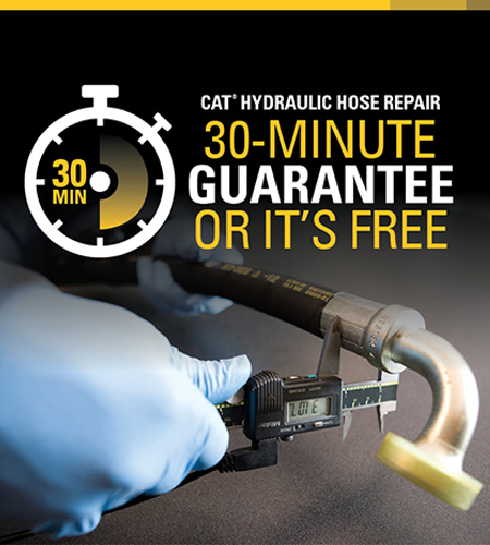 When hose failure happens, Carter Machinery's hydraulic hose repair experts are dedicated to getting you back to work faster. And now, at select locations, we’ll build you a replacement in less than 30 minutes or it's free!*