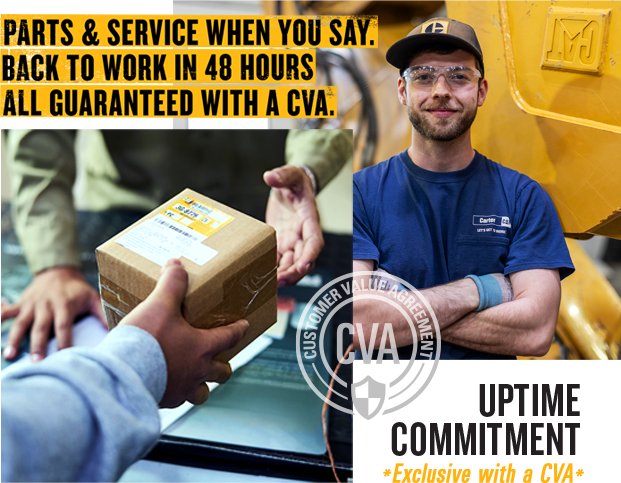 With the new Uptime Commitment — included with every CVA — you get next-day maintenance, wear, and repair parts* and immediate service response**, guaranteeing you're back to work within 48 hours.***