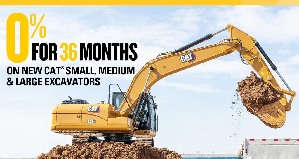 Smart power modes. Efficient engines. Advanced hydraulics. Whether you want a Small, Medium, or Large Cat® Excavator, you’ll get a machine packed with fuel-saving features that will raise your money-making potential. And with limited-time 0% for 36 months financing + a Cat CVA, now is the time to save even more on a new Cat Excavator.